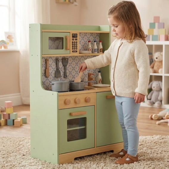 Drewniana Kuchnia dla Dzieci MDF Miętowa z Akcesoriami – Styl Vintage