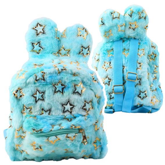 PLECAK FUTRZANY Z USZAMI I GWIAZDKAMI NIEBIESKI 24 x 22 CM